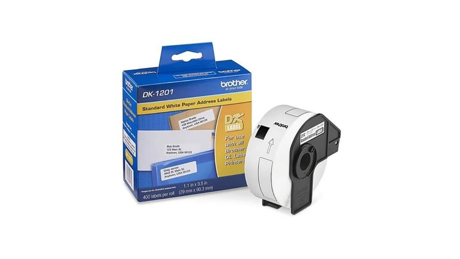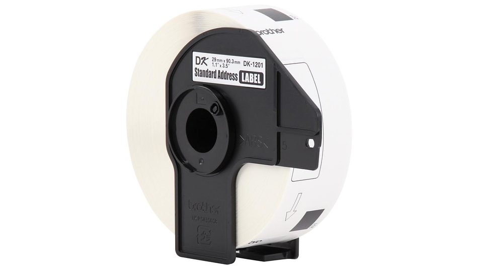 BROTHER DK-1201 | DK1201 | Cinta de etiquetas fondo Blanco - Texto Negro | 400 etiquetas pre cortadas de 29 milímetros de ancho x 90 milímetros de largo | papel térmico y con adhesivo industrial