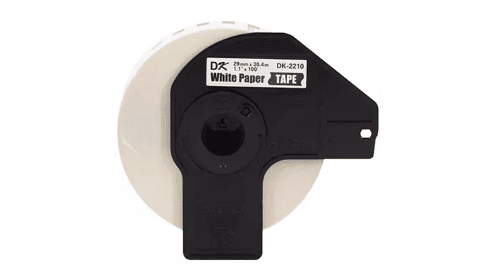 PACK 2 X BROTHER DK-2210 | DK2210 | DK 2210 | Cinta de etiquetas fondo Blanco - Texto Negro | 29 milímetros de ancho x 30,48 metros de largo papel térmico y con adhesivo industrial