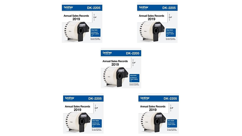 Pack 5 x Brother DK-2205 | Cinta Etiqueta Blanca - Texto Negro