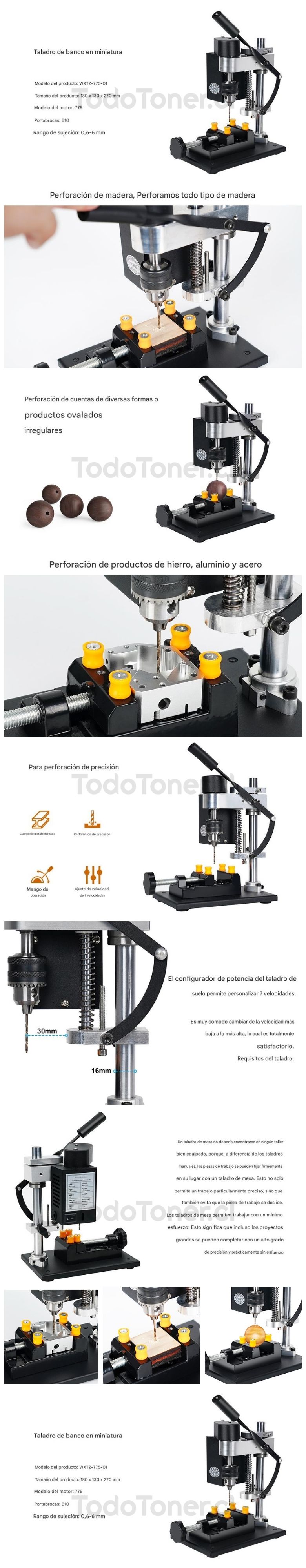 ?Motor 775 potente? Pinza de 0.3-6 mm para materiales pequeños. Diseñado para perforación de alta precisión en una amplia gama de materiales desde PCB a metales suaves.