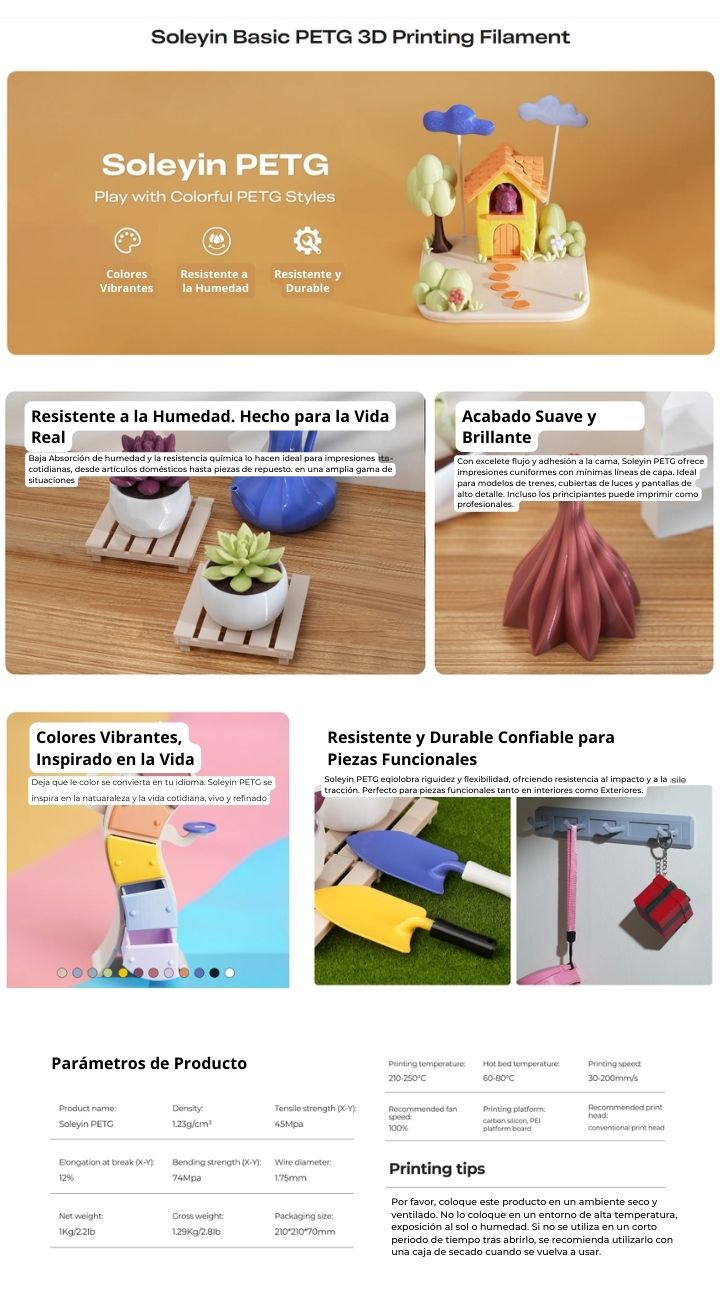 - Alta Resistencia y Durabilidad: Combina facilidad de impresión con resistencia a impactos y temperaturas.