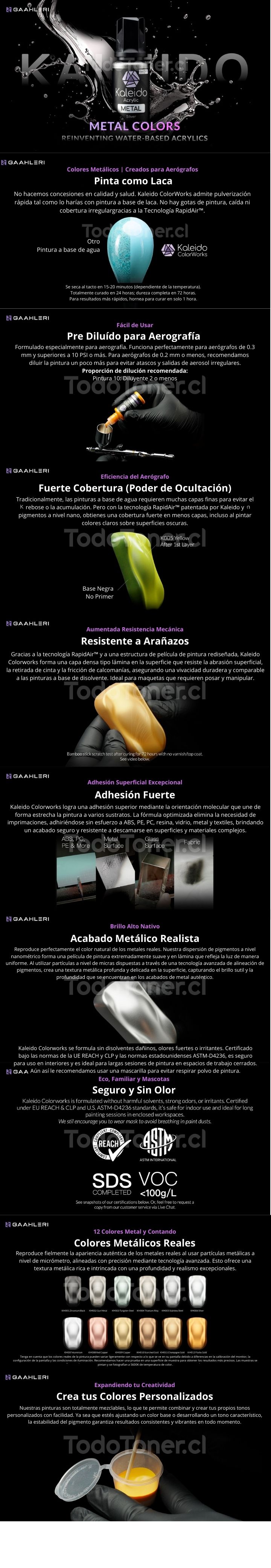 Pintura Kaleido KM006 Plateado Gloss Chile • Efecto Espejo Más Brillante • Distribuidor Oficial TodoToner.cl • Envío 24-48h a Todo Chile