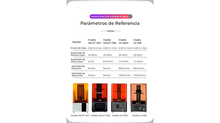Estas son algunas de las impresoras compatibles con las resinas LAVABLE AL AGUA CREALITY PLUS: