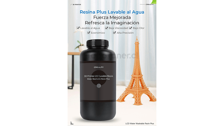 - Resina Lavable al Agua Blanca para Impresoras 3D 500g Creality Plus | Resinas