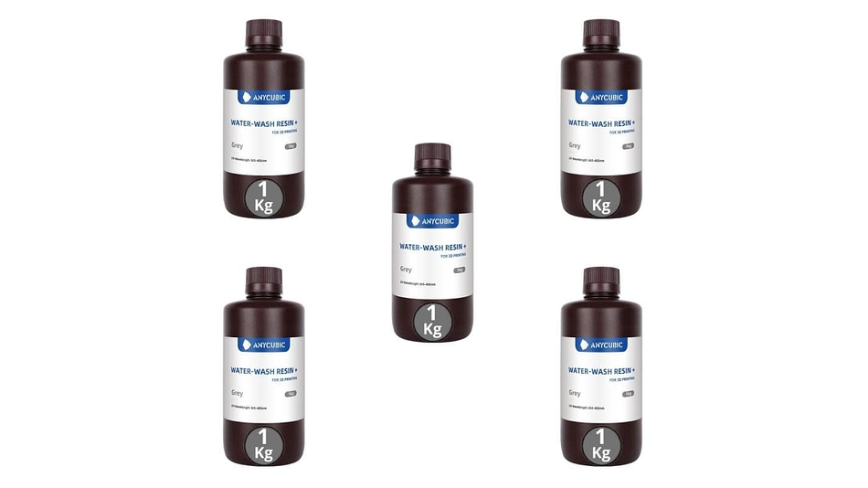 - Pack 5 x Resina Lavable al Agua Gris para Impresoras 3D 1000g Anycubic | Resinas