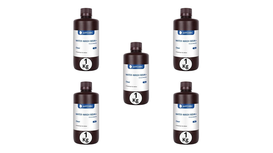 - Pack 5 x Resina Lavable al Agua Transparente para Impresoras 3D 1000g Anycubic | Resinas
