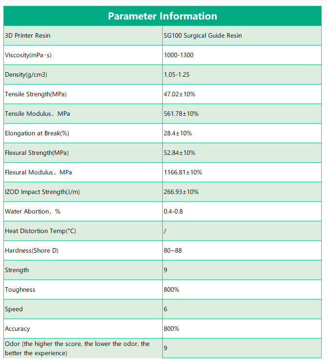| Material | SG100 Guía Quirúrgica Resin (Resina Dental) |