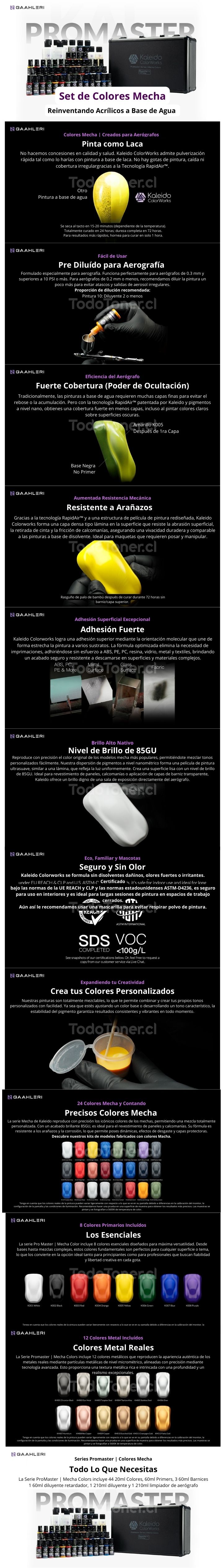 El Set 24 Colores Primarios Brillantes Kaleido es el pack más completo y vendido en Chile para modelismo, ilustración y aerografía. Incluye 24 tonos fundamentales con brillo intenso y máxima opacidad + disolvente y limpiador de 60 ml gratis. Tecnología RapidAir™ para pulverización perfecta desde la primera capa. Ideal para maquetas Gundam, autos a escala y modelismo profesional. Disponible en TodoToner.cl con stock en Santiago y envío rápido a todo Chile.